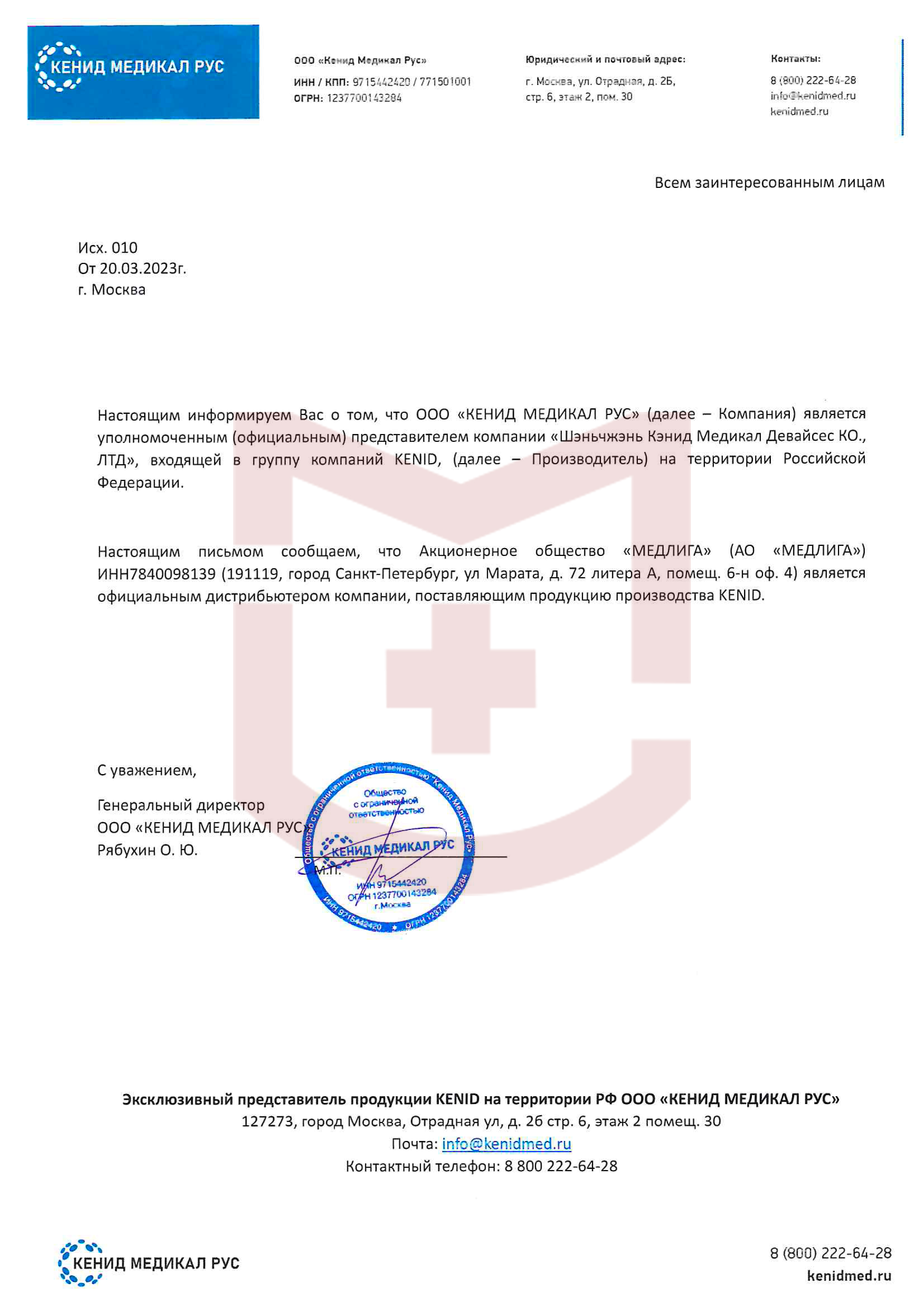 Авторизационное письмо KENID от 2023 года