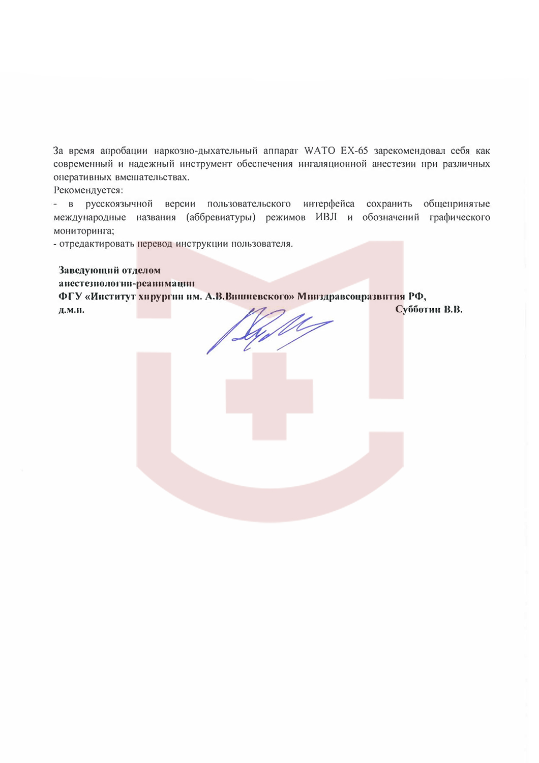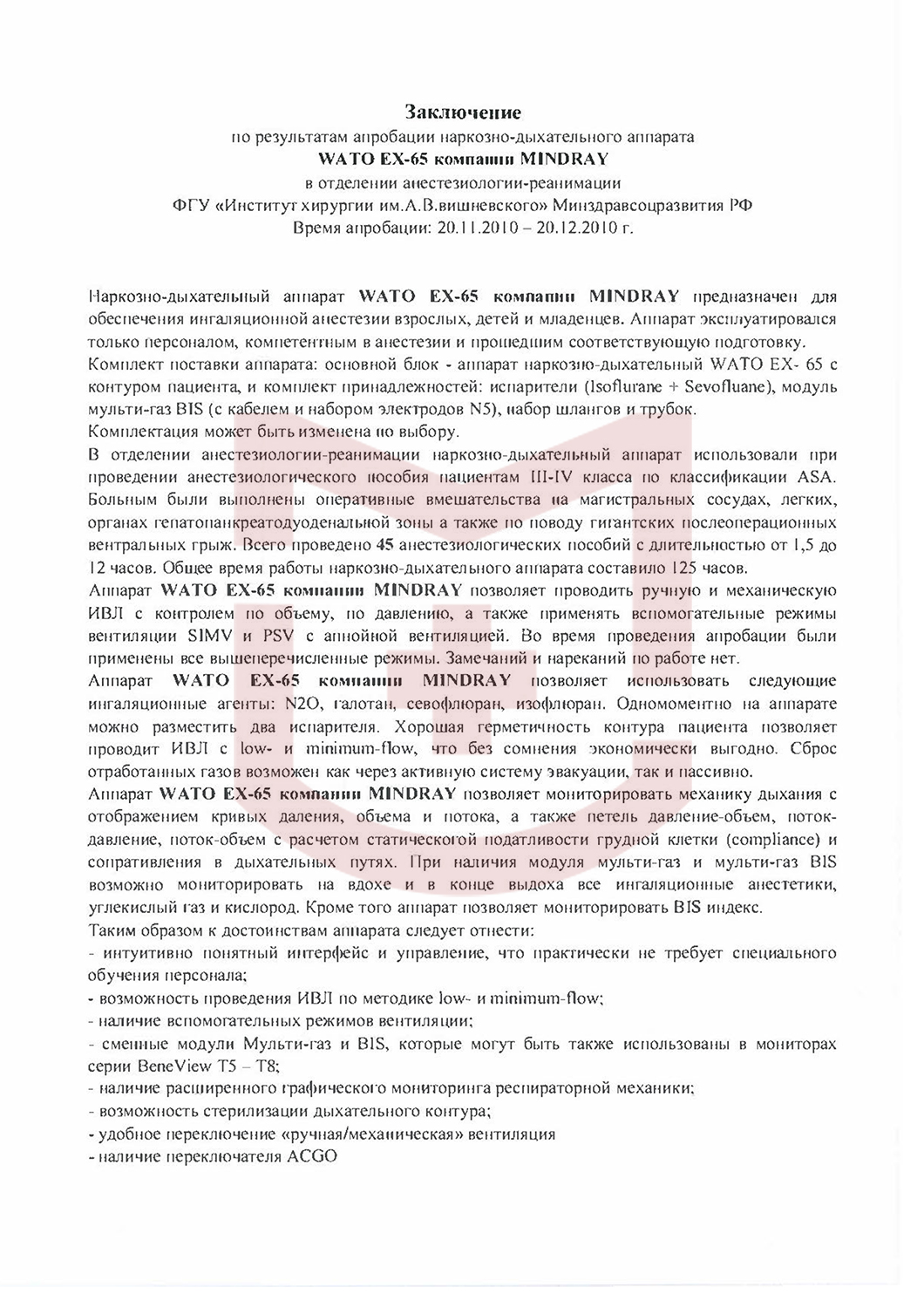 Отзыв от ФГУ «Института хирургии им. А.В.Вишневского» Минздравсоцразвития РФ