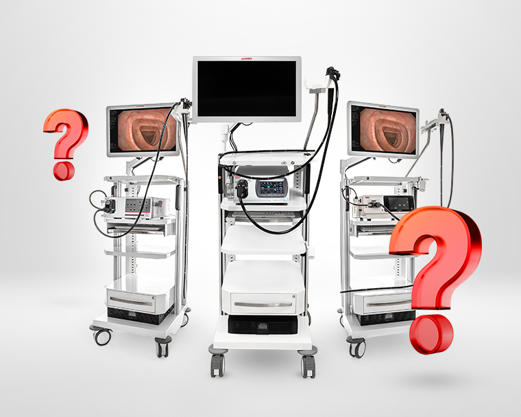 Видеоэндоскопы подключаются к эндоскопической стойке, которая состоит из видеопроцессора, где происходит обработка видео, дисплея, на который выводится получаемой изображение. А также, в состав эндоскопической системы визуализации обычно входит приборная тележка с держателями монитора и эндоскопа, аспиратор, ирригационная помпа, инсуффлятор (для колоноскопии).