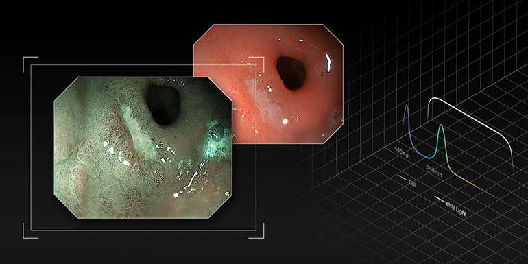 Оптическая хромоэндоскопия (CBI) демонстрирует более высокий контраст между слизистой оболочкой и кровеносными сосудами, что помогает дифференцировать ряд поражений слизистой оболочки и подчеркнуть распределение подслизистых сосудов.