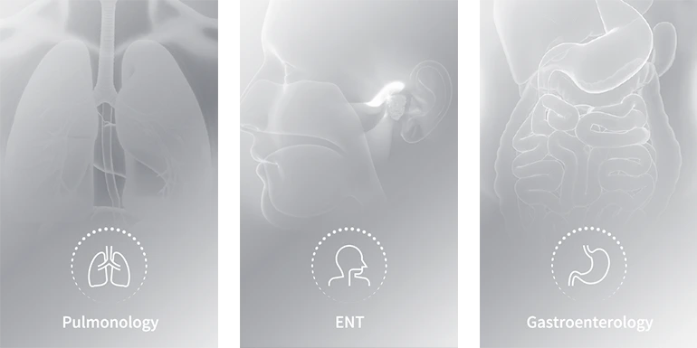 Помимо диагностических и терапевтических эндоскопов для ЖКТ, AQ-110 также совместима с видеобронхоскопами и видеоларингоскопами.