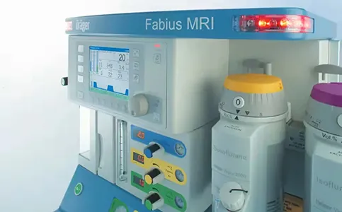 Dräger Fabius MRI — наркозно-дыхательный аппарат, применяемый для вентиляции лёгких при использовании МРТ-аппарата. Устройство подходит для пациентов всех возрастов (младенцы, дети и взрослые). Дизайн устройства позволяет улучшать модель при помощи дополнительных аксессуаров, а также разместить её в удобном месте. Расширьте диагностические возможности вашего устройства МРТ с помощью современной вентиляции в аппарате Dräger Fabius MRI, разработанном специально для работы в условиях МРТ.