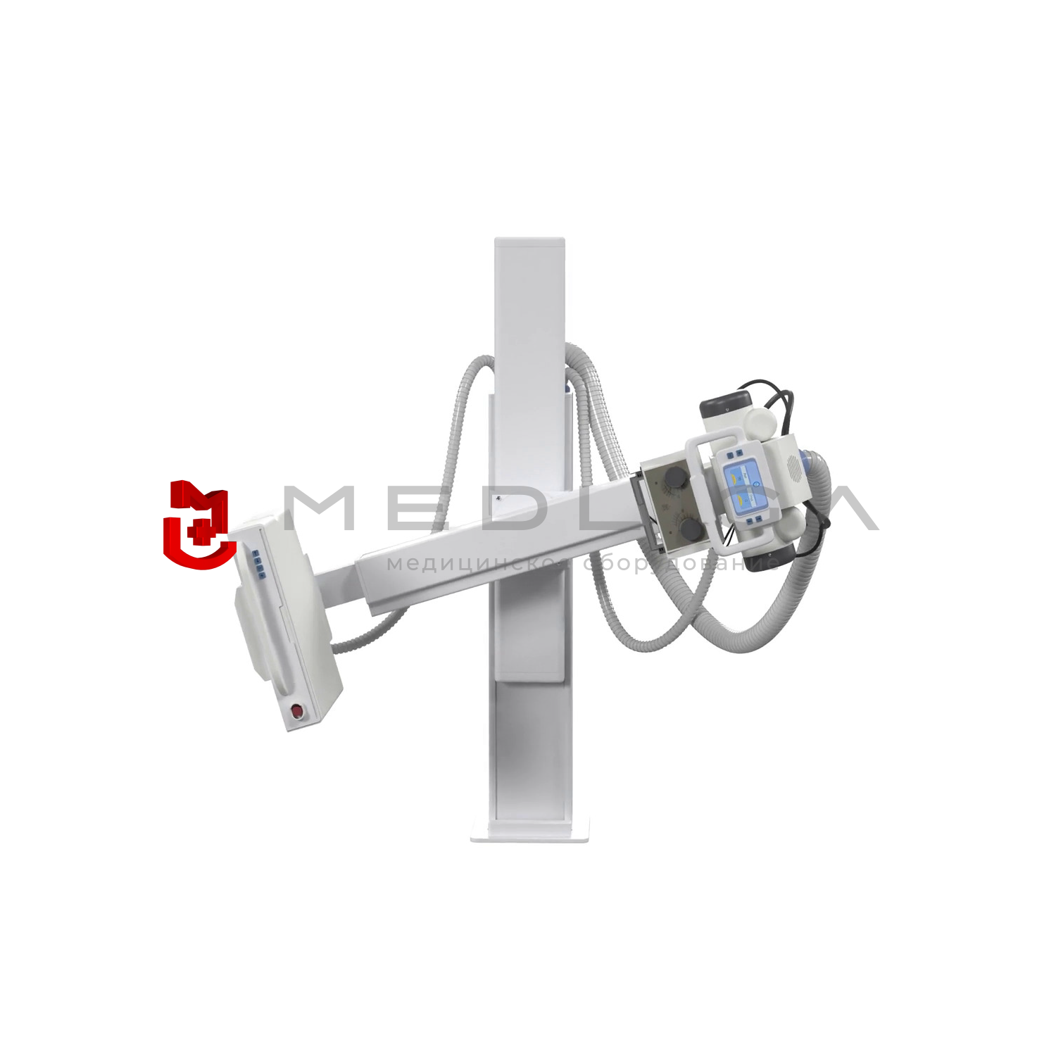 Цифровой флюорограф открытого типа представляет собой стойку-штатив с моторизованным вертикальным перемещением траверсы и плоскопанельным цифровым детектором 43х43 см.