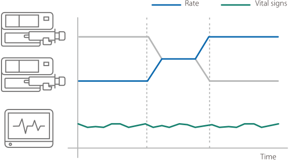 - Плавное переключение обеспечивает стабильный и бесперебойный процесс введения препарата.