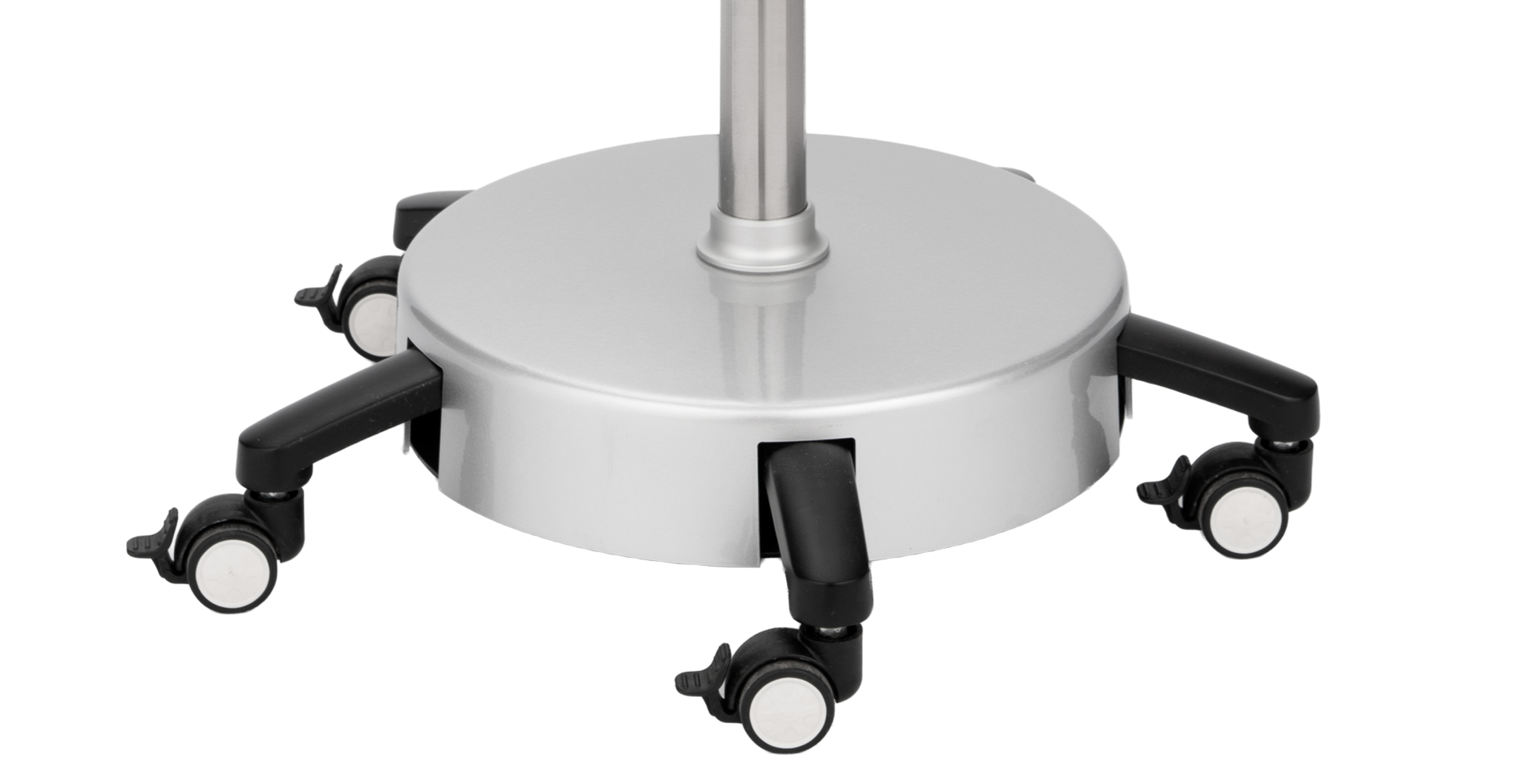 Штатив на перекатном основании с 5-ю колесами позволяет легко и быстро перемещать кольпоскоп.