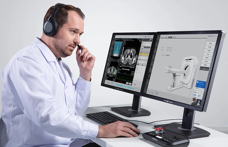 InsitumCT 338 - мультисрезовый компьютерный томограф на 32 среза для рутинных и углубленных диагностических обследований, малоинвазивных вмешательств под контролем КТ. К ключевым особенностям рентгеновских сканеров компании SinoVision относятся: пониженная лучевая нагрузка, ускоренное сканирование с получением четкого и детального изображения, что позволяет выявлять мелкие патологические изменения в любой части организма человека.