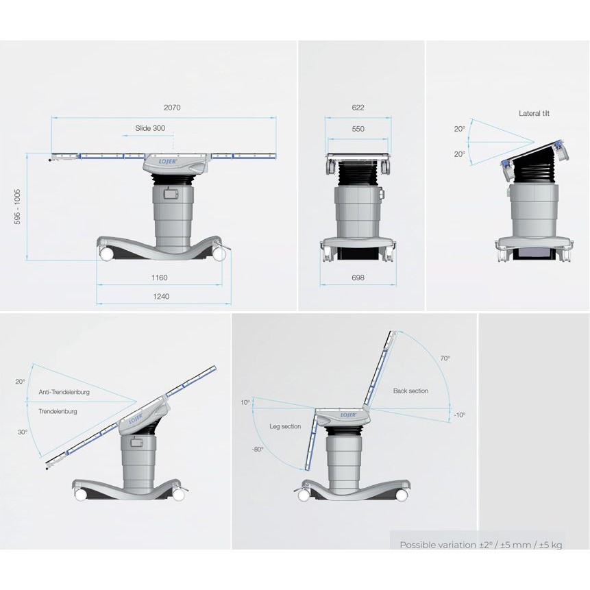Продольное смещение столешницы вместе с модульными элементами секций обеспечивает широкий спектр различных хирургических положений, включая положения flex и reflex. В сочетании с широким ассортиментом аксессуаров, стол Lojer Scandia SC440 обеспечивает эргономичное и анатомически оптимальное положение тела пациента. Операционный стол обладает четырьмя программируемыми положениями памяти и нулевое положение.
