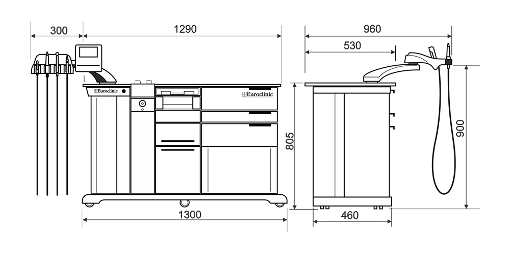- ящик для грязных инструментов со съемным пластиковым поддоном и возможностью добавления дезинфицирующей жидкости;