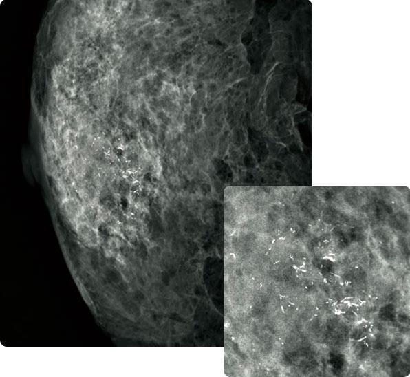 Эти реконструируемые томографические изображения упрощают выявление поражений, которые, как правило, сложно увидеть при обычной маммографии из-за присутствия перекрывающихся структур молочной железы.