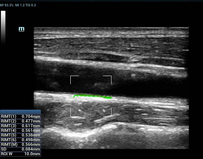 За счет содержащихся в необработанном акустическом сигнале данных из радиодиапазона (RF-Data), технология RIMT обеспечивает автоматическое измерение толщины КИМ в режиме реального времени с исключительно высокой точностью до 5 мкм, с количественным анализом в пределах 6 сердечных циклов и с меньшей зависимостью от качества изображения – все это значительно повышает точность диагностики.