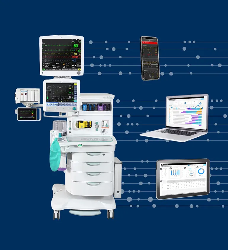 Анестезиологический аппарат способен поддержки интегрироваться в больничную сеть за счет упрощения подключений к другим медицинским устройствам и к сети вашей больницы, предоставления 8 параметров в режиме реального времени и ретроспективных параметров.