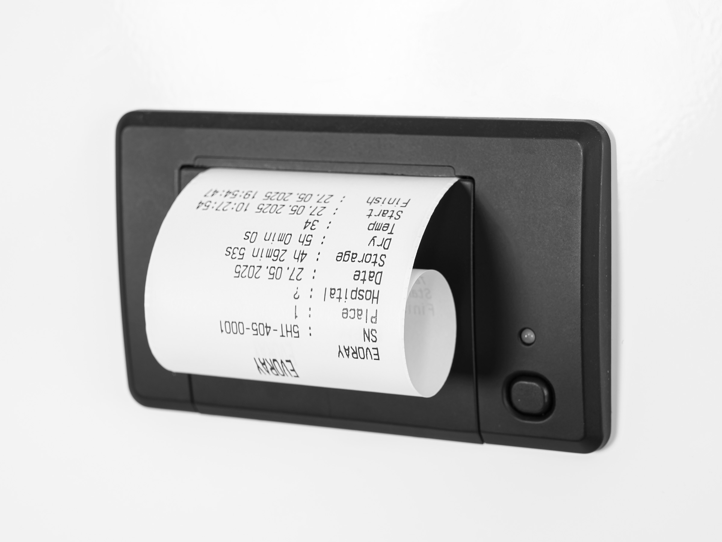 Оснащен встроенным термопринтером, расположенным на двери технического отсека. Распечатайте отчет одним нажатием кнопки “Отчет по каналам” в меню системы.