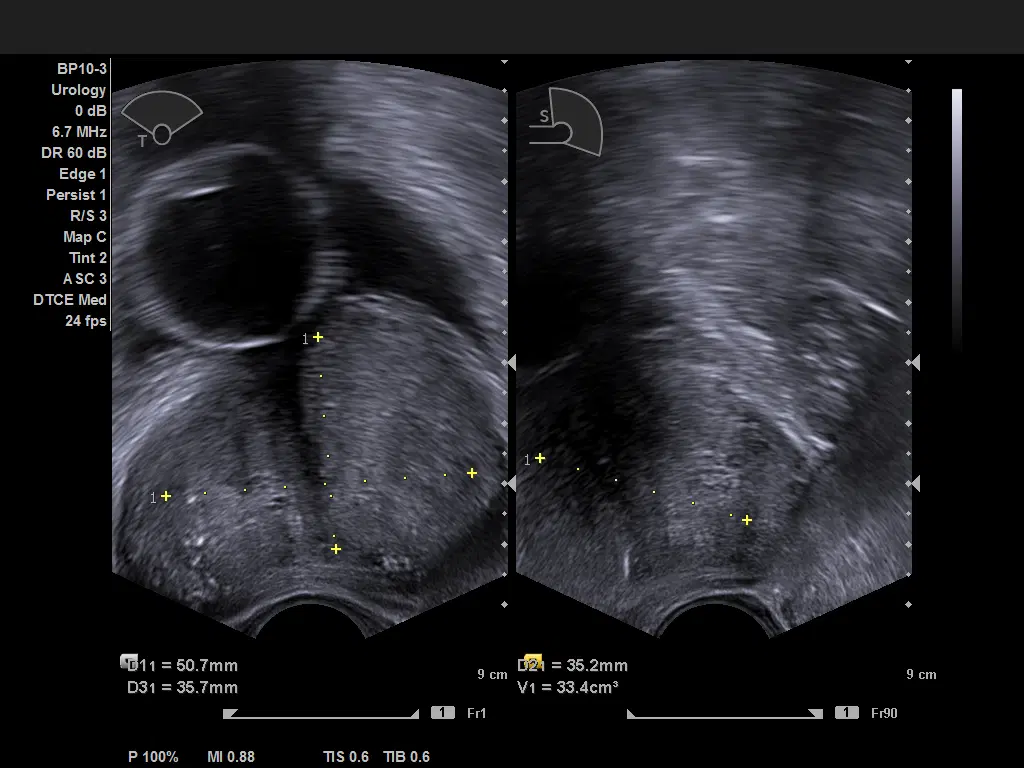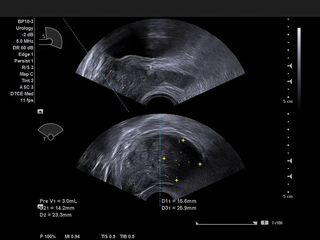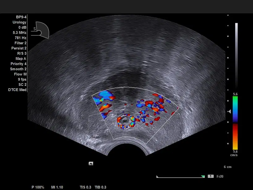Визуализация предстательной железы в режиме цветового доплеровского картирования с помощью датчика BP10-3