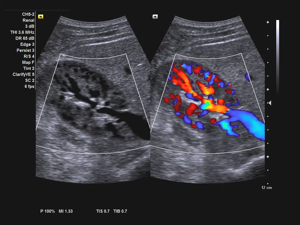 Визуализация сосудов почки с помощью технологии Clarify™ vascular enhancement (VE) и режима цветового доплеровского картирования