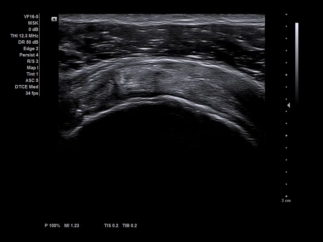 Визуализация сухожилия надостной мышцы с помощью датчика VF16-5