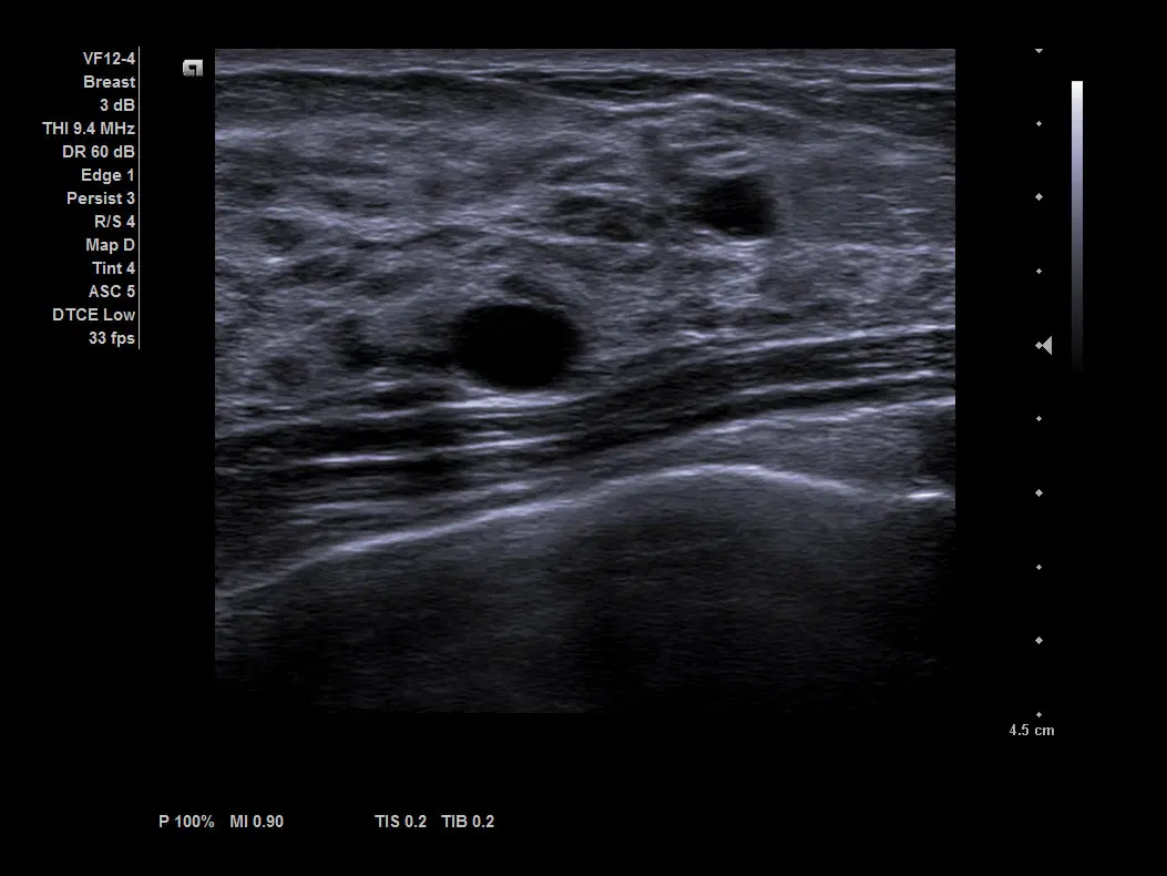 Визуализация кисты в молочной железе с помощью датчика VF12-4