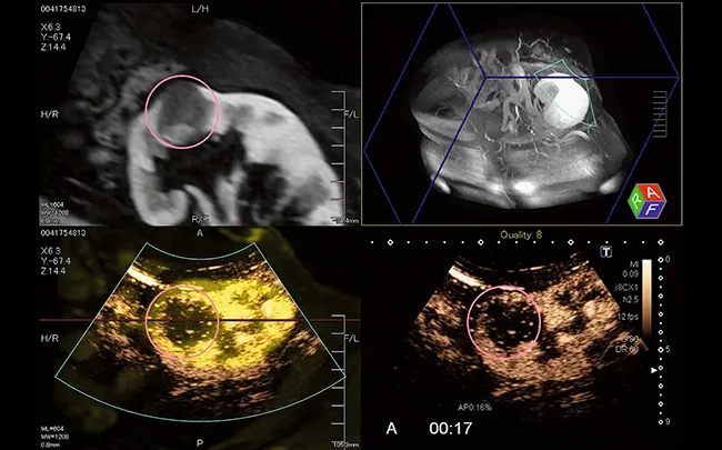 Для комплексного обследования Smart Fusion позволяет работать в нескольких режимах визуализации, включая цветную допплерографию и CEUS. Лаконичный четырехзонный дисплей отображает изображение ультразвука в реальном времени синхронно с несколькими видами предварительно загруженных данных.