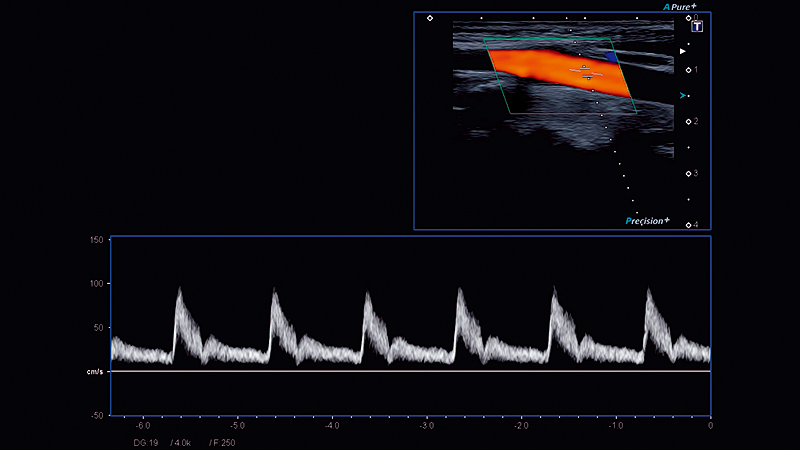 Высокочувствительный цветной допплеровский датчик системы отображает небольшие струи или потоки, направленные вниз к легочным венам, с выдающимся пространственным и временным разрешением.