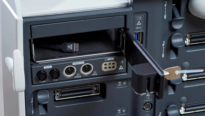 В систему может быть встроен запирающийся на ключ ящик для подключения и безопасного хранения внешних устройств памяти, таких как съёмные жесткие диски.