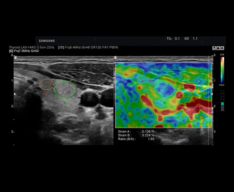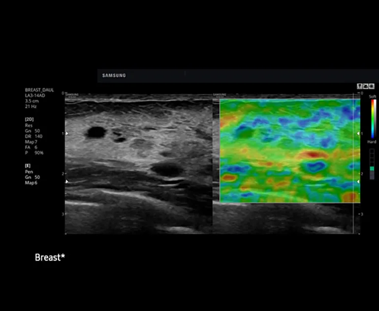 ElastoScan™ — диагностический ультразвуковой метод визуализации эластичности, который определяет наличие твёрдых образований в тканях и преобразует любую жёсткость в цветные изображения.
