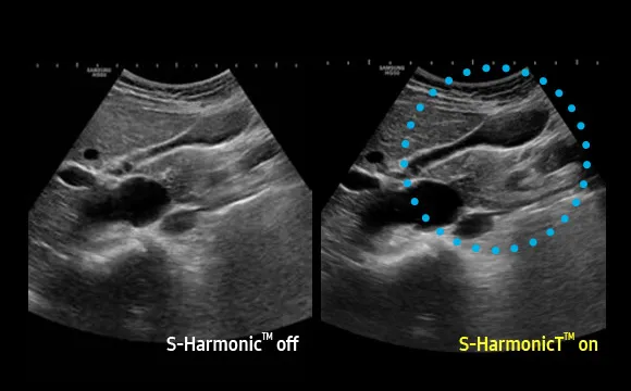 S-Harmonic  S-Harmonic™ с использованием технологии инверсии импульсов повышает четкость изображения как вблизи, так и на расстоянии. Снижая уровень шума сигнала, S-Harmonic™ обеспечивает более однородное ультразвуковое изображение.
