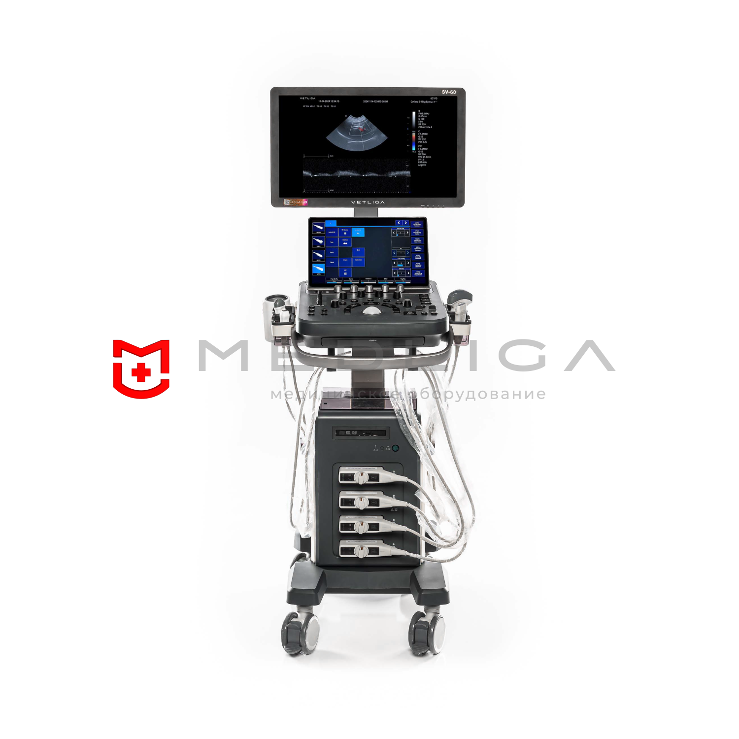 VETLIGA SV-60 создан для обеспечения комфортной рабочей среды и повышения эффективности от проводимых исследований. УЗИ-сканер оснащен 4 активными портами, а также имеет поддержку монокристальных датчиков.