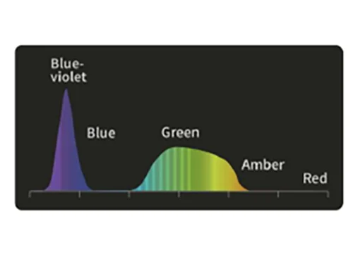 Свет фиолетового и зеленого спектров наиболее эффективно поглощается гемоглобином, что снижает отражение и рассеяние и позволяет четко визуализировать поверхностные сосуды слизистой оболочки. Увеличивает контраст между кровеносными сосудами и окружающей тканью.
